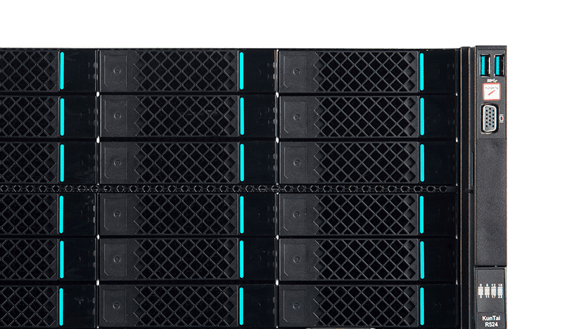 KunTai R524 存储型服务器是盛鸿国际数码基于鲲鹏处理器推出的新一代 ARM数据中心服务器。。。主要面向存储业务,,,具有海量存储、、高性能、、、低功耗以及易扩展的特点,,,适合为大数据分析、、、、软件定义存 储等应用场景的工作负载进行髙效加速。。